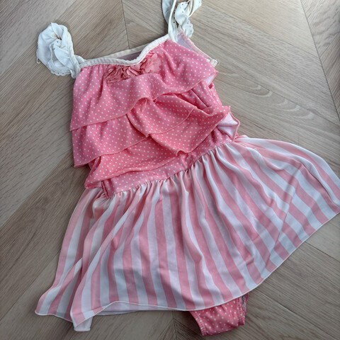 【初出品】ピンクの水着/ボーダー×水玉 130くらい