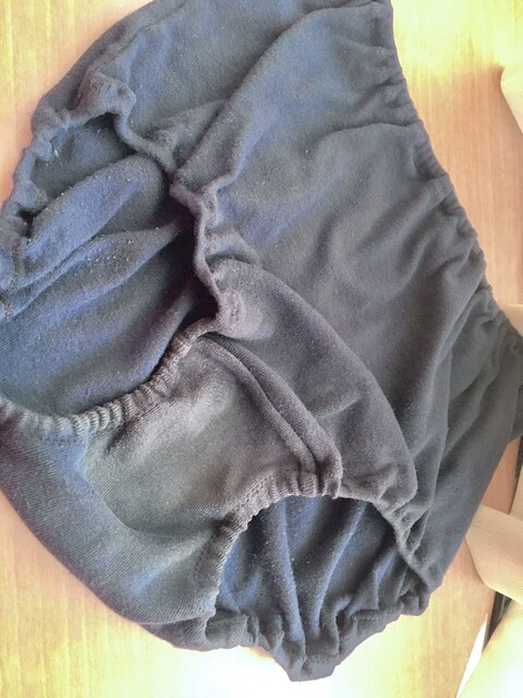 下の子JC1がJS5から使ってる紺色のオーバーパンツです 超くたくたでお股のとこ・・・
