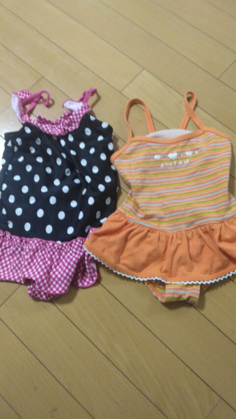 JCちゃんから愛用のおさがりワンピ水着です(^^)水玉でかわいいです オレンジの・・・